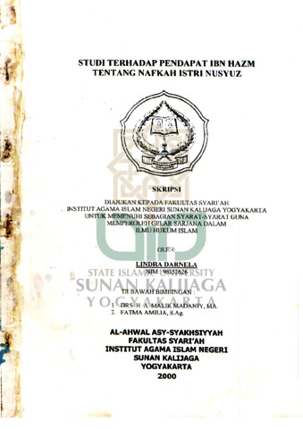 Lindra Darnela, NIM.: 96352626 (2000) STUDI TERHADAP PENDAPAT IBN HAZM TENTANG NAFKAH ISTRI NUSYUZ. Skripsi thesis, UIN SUNAN KALIJAGA YOGYAKARTA.