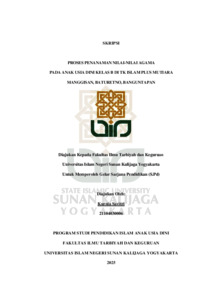 Text (PROSES PENANAMAN NILAI-NILAI AGAMA PADA ANAK USIA DINI KELAS B DI TK ISLAM PLUS MUTIARA MANGGISAN, BATURETNO, BANGUNTAPAN)