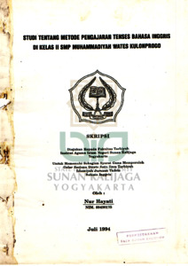 Nur Hayati, NIM.: 88430175 (1994) STUDI TENTANG METODE PENGAJARAN TENSES BAHASA INGGRIS DI KELAS II SMP MUHAMMADIYAH WATES KULONPROGO. Skripsi thesis, UIN SUNAN KALIJAGA YOGYAKARTA.