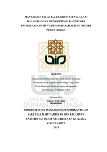 Isnaeni Widi Utami, NIM.: 18104090049 (2025) MANAJEMEN KELAS JALUR KHUSUS (UNGGULAN) DALAM RANGKA MENGOPTIMALKAN PROSES PEMBELAJARAN SISWA DI MADRASAH ALIYAH NEGERI PURBALINGGA. Skripsi thesis, UIN SUNAN KALIJAGA YOGYAKARTA.