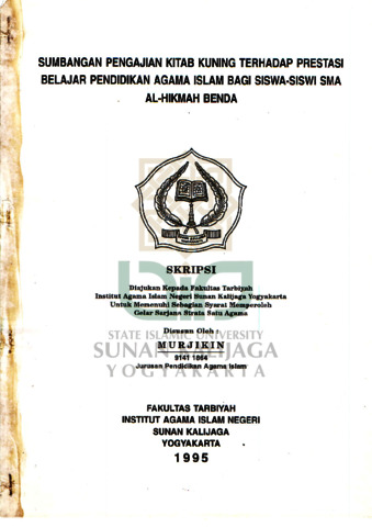 Murjikin, NIM.: 91411864 (1996) SUMBANGAN PENGAJIAN KITAB KUNING TERHADAP PRESTASI BELAJAR PENDIDIKAN AGAMA ISLAM BAGI SISWA-SISWI SMA AL-HIKMAH BENDA. Skripsi thesis, UIN SUNAN KALIJAGA YOGYAKARTA.