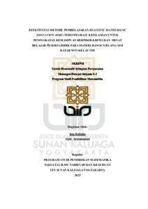 Ima Rofaida, NIM.: 20104040049 (2025) EFEKTIVITAS METODE PEMBELAJARAN REALISTIC MATHEMATIC EDUCATION (RME) TERINTEGRASI KEISLAMAN UNTUK PENINGKATAN KEMAMPUAN BERPIKIR KRITIS DAN MINAT BELAJAR PESERTA DIDIK PADA MATERI BANGUN RUANG SISI DATAR MTS KELAS. Skripsi thesis, UIN SUNAN KALIJAGA YOGYAKARTA.