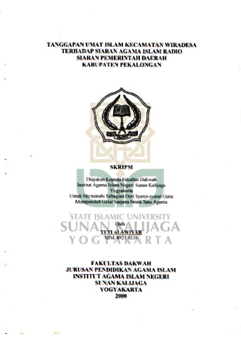 Text (TANGGAPAN UMAT ISLAM KECAMATAN WIRADESA TERHADAP SIARAN AGAMA ISLAM RADIO SlARAN PEMERINTAH DAERAH KABUPATEN PEKALONGAN)