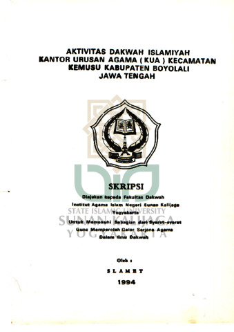 Slamet, NIM.: 89210479 (1994) AKTIVITAS DAKWAH ISLAMIYAH K.ANTOR URUSAN AGAMA (KUA) KECAMATAN KEMUSU KABUPATEN BOYOLALI JAWA TENGAH. Skripsi thesis, UIN SUNAN KALIJAGA YOGYAKARTA.