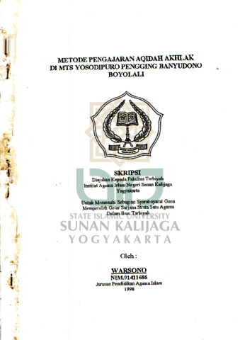 Text (METODE PENGAJARAN AQIDAH AKHLAK DI MTS YOSODIPURO PENGGING BANYUDONO BOYOLALI)