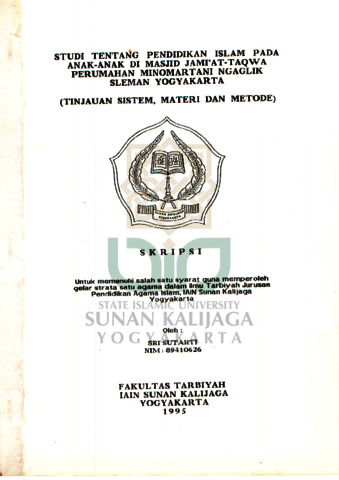 Text (STUDI TENTANG PENDIDIKAN ISLAM PADA ANAK-ANAK DI MASJID JAMI'AT-TAQWA PERUMAHAN MINOMARTANI NGAGLIK SLEMAN YOGYAKARTA (TINJAUAN SISTEM, MATERI DAN METODE))
