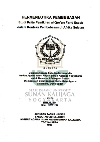 Mukhlisin, NIM.: 92531264 (2025) HERMENEUTIKA PEMBEBASAN Studi Kritis Pemikiran al-Qur'an Farid Esack dalam Konteks Pembebasan di Afrika Selatan. Skripsi thesis, UIN SUNAN KALIJAGA YOGYAKARTA.