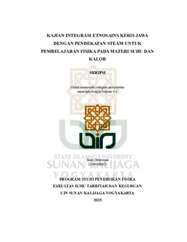 Sinta Oktaviana, NIM.: 21104050022 (2025) KAJIAN INTEGRASI ETNOSAINS KERIS JAWA DENGAN PENDEKATAN STEAM UNTUK PEMBELAJARAN FISIKA PADA MATERI SUHU DAN KALOR. Skripsi thesis, UIN SUNAN KALIJAGA YOGYAKARTA.