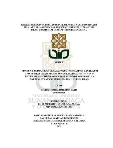 Muhammad Sirojuddin Sa’id, NIM.: 21103060028 (2025) GENCATAN SENJATA DENGAN ISRAEL MENURUT YUSUF QARDHAWI DAN ‘ABD AL-‘AZIZ BIN BAZ PERSPEKTIF HUKUM HUMANITER ISLAM DAN HUKUM HUMANITER INTERNASIONAL. Skripsi thesis, UIN SUNAN KALIJAGA YOGYAKARTA.