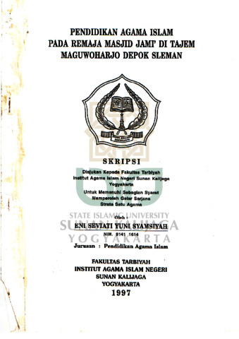 Eni Seviati Yuni Syamsiyah, NIM.: 91411614 (1997) PENDIDIKAN AGAMA ISLAM PADA REMAJA MASJID JAMI' DI TAJEM MAGUWOHARJO DEPOK SLEMAN. Skripsi thesis, UIN SUNAN KALIJAGA YOGYAKARTA.