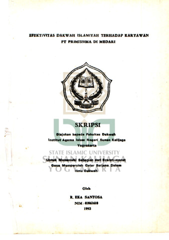 R. Eka Santosa, NIM.: 02862618 (1993) EVEKTIVITAS DAKWAH ISLAMIYAH TERHADAP KARYAWAN PT PRIMISSIMA DI MEDARI. Skripsi thesis, UIN SUNAN KALIJAGA YOGYAKARTA.