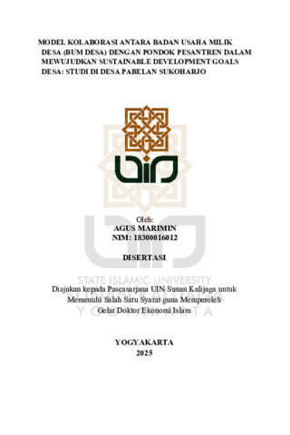 Agus Marimin, NIM.: 18300016012 (2025) MODEL KOLABORASI ANTARA BADAN USAHA MILIK DESA (BUM DESA) DENGAN PONDOK PESANTREN DALAM MEWUJUDKAN SUSTAINABLE DEVELOPMENT GOALS DESA: STUDI DI DESA PABELAN SUKOHARJO. Doctoral thesis, UIN SUNAN KALIJAGA YOGYAKARTA.