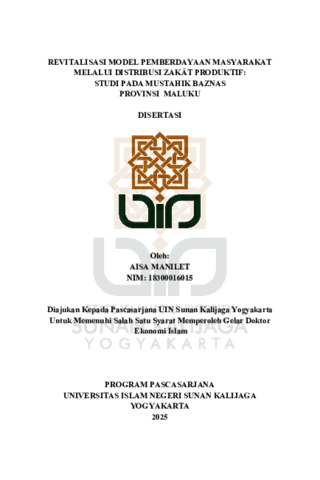 Aisa Manilet, NIM.: 18300016015 (2025) REVITALISASI MODEL PEMBERDAYAAN MASYARAKAT MELALUI DISTRIBUSI ZAKAT PRODUKTIF: STUDI PADA MUSTAHIK BAZNAS PROVINSI MALUKU. Doctoral thesis, UIN SUNAN KALIJAGA YOGYAKARTA.