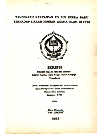 Nasir Mustafa, NIM.: 02862900 (1993) TANGGAPAN KARYAWAN PO BUS EXPRA BARU TERHADAP SIARAN MIMBAR AGAMA ISLAM DI TVRI. Skripsi thesis, UIN SUNAN KALIJAGA YOGYAKARTA.