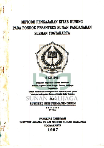Suwitri Nur Firmaningrum, NIM.: 89410653 (1997) METODE PENGAJARAN KITAB KUNING PADA PONDOK PESANTREN SUNAN PANDANARAN SLEMAN YOGYAKARTA. Skripsi thesis, UIN SUNAN KALIJAGA YOGYAKARTA.