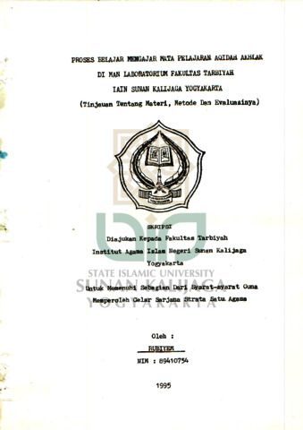 Text (PROSES BELAJAR MENGAJAR MATA PELAJARAN AQIDAH AKHLAK DI MAN LABORATORIUM FAKULTAS TARBIYAH IAIN SUNAN KALIJAGA YOGYAKARTA (TINJAUAN TENTANG MATERI, METODE DAN EVALUASINYA))