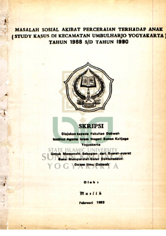 Text (MASALAH SOSIAL AKIBAT PERCERAIAN TERHADAP ANAK (STUDI KASUS DI KECAMATAN UMBULHARJO YOGYAKARTA) TAHUN 1988 S/D 1990)