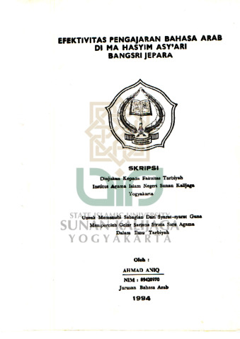 Ahmad Aniq, NIM.: 89420970 (1995) EFEKTIVITAS PENGAJARAN BAHASA ARAB DI MA HASYIM ASY'ARI BANGSRI JEPARA. Skripsi thesis, UIN SUNAN KALIJAGA YOGYAKARTA.