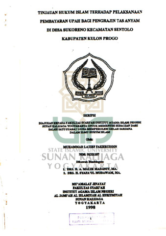 Text (TINJAUAN HUKUM ISLAM TERHADAP PELAKSANAN PEMBAYARAN UPAH BAGI PENGRAJIN TAS ANYAM DI DESA SUKORENO KECAMATAN SENTOLO KABUPATEN KABUPATEN LENDAH KULON PROGO)