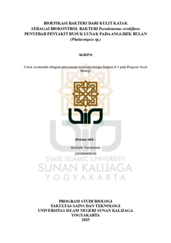 Axelindo Suswantoro, NIM.: 20106040010 (2025) BIOEFIKASI BAKTERI DARI KULIT KATAK SEBAGAI BIOKONTROL BAKTERI Pseudomonas viridiflava PENYEBAB PENYAKIT BUSUK LUNAK PADA ANGGREK BULAN (Phalaenopsis sp.). Skripsi thesis, UIN SUNAN KALIJAGA YOGYAKARTA.