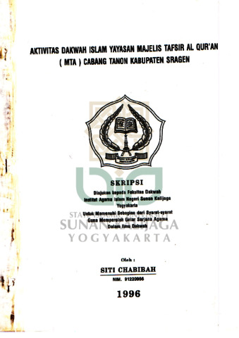 Siti Chabibah, NIM.: 91220966 (1996) AKTIVITAS DAKWAH ISLAM YAYASAN MAJELIS TAFSIR AL QUR'AN (MTA) CABANG TANON KABUPATEN SRAGEN. Skripsi thesis, UIN SUNAN KALIJAGA YOGYAKARTA.