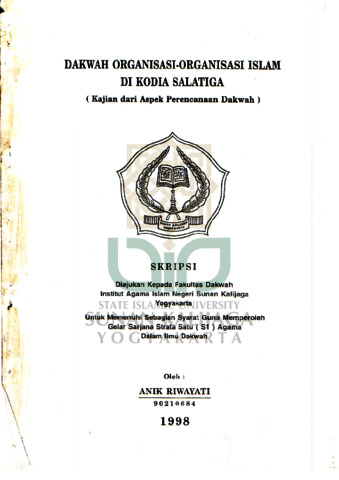 Anik Riwayati, NIM.: 90210684 (1997) DAKWAH ORGANISASI-ORGANISASI ISLAM DI KODIA SALATIGA ( KAJIAN DARI ASPEK PERENCANAAN DAKWAH ). Skripsi thesis, UIN SUNAN KALIJAGA YOGYAKARTA.