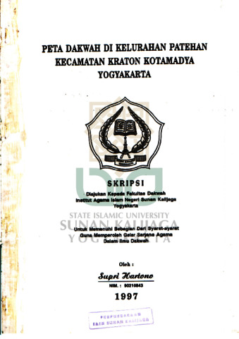 Supri Hartono, NIM.: 90210843 (1997) PETA DAKWAH DI KELURAHAN PATEHAN KECAMATAN KRATON KOTAMADYA YOGYAKARTA. Skripsi thesis, UIN SUNAN KALIJAGA YOGYAKARTA.