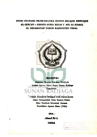 Text (STUDI TENTANG PROBLEMATIKA PROSES BELAJAR MENGAJAR AL-QUR’AN-HADITS SISWA KELAS 1 MTS AL-KAMAL DI KECAMATAN TARUB KABUPATEN TEGAL)
