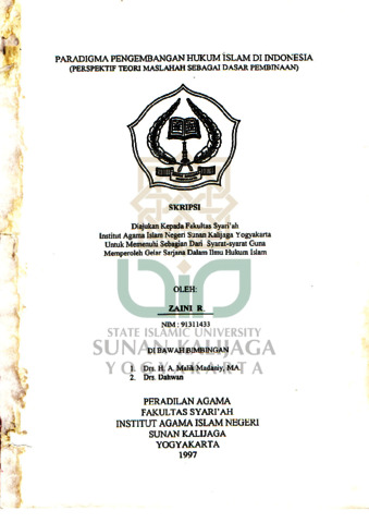Zaini R., NIM.: 91311433 (1997) PARADIGMA PENGEMBANGAN HUKUM ISLAM DI INDONESIA (PERSPEKTIF TEORI MASLAHAH MURSALAH SEBAGAI DASAR PEMBINAAN). Skripsi thesis, UIN SUNAN KALIJAGA YOGYAKARTA.