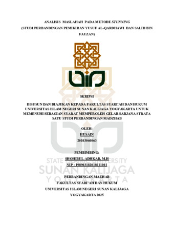 Husain, NIM.: 20103060063 (2025) ANALISIS MASLAHAH PADA METODE STUNNING (STUDI PERBANDINGAN PEMIKIRAN YUSUF AL-QARDHAWI DAN SALIH BIN FAUZAN). Skripsi thesis, UIN SUNAN KALIJAGA YOGYAKARTA.