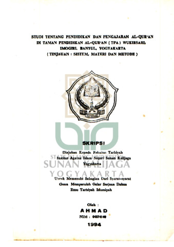 Text (STUDI TENTANG PENDIDIKAN DAN PENGAJARAN AL-QUR’AN DI TAMAN PENDIDIKAN AL-QUR’AN (TPA) WUKIRSARI, IMOGIRI, BANTUL, YOGYAKARTA ( TINJAUAN: SISTEM, MATERI DAN METODE ))