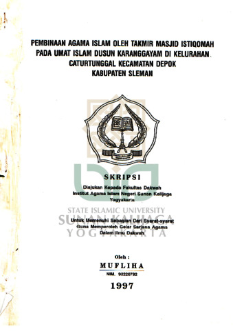 Mufliha, NIM.: 90220792 (1997) PEMBINAAN AGAMA ISLAM OLEH TAKMIR MASJID ISTIQOMAH PADA UMAT ISLAM DUSUN KARANGGAYAM DI KELURAHA_N CATURTUNGGAL KECAMATAN DEPOK KABUPATEN SLEMAN. Skripsi thesis, UIN SUNAN KALIJAGA YOGYAKARTA.