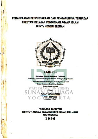 Text (PEMANFAATAN PERPUSTAKAAN DAN PENGARUHNYA TERHADAP PRESTASI BELAJAR PENDIDIKAN AGAMA ISLAM DI MTS NEGERI SLEMAN)