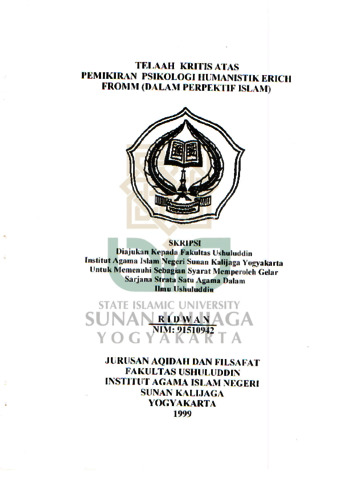 Text (TELAAH KRITIS ATAS PEMIKIRAN PSlKOLOGI HUMANISTIK ERICH FROMM (DALAM PERSPEKTIF ISLAM))