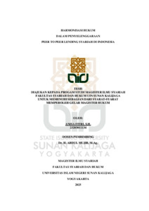 Anisa Fitri, S.H., NIM.: 23203011134 (2025) HARMONISASI HUKUM DALAM PENYELENGGARAAN PEER TO PEER LENDING SYARIAH DI INDONESIA. Masters thesis, UIN SUNAN KALIJAGA YOGYAKARTA.