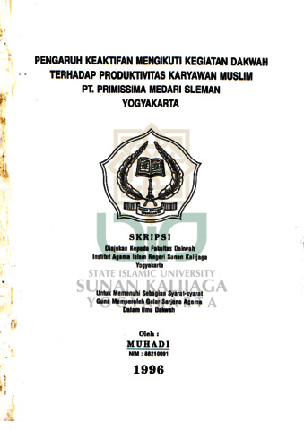 Muhadi, NIM.: 88210091 (1996) PENGARUH KEAKTIFAN MENGIKUTI KEGIATAN DAKWAH TERHADAP PRODUKTIVITAS KARYAWAN MUSLIM PT. PRIMISSIMA MEDARI SLEMAN YOGYAKARTA. Skripsi thesis, UIN SUNAN KALIJAGA YOGYAKARTA.