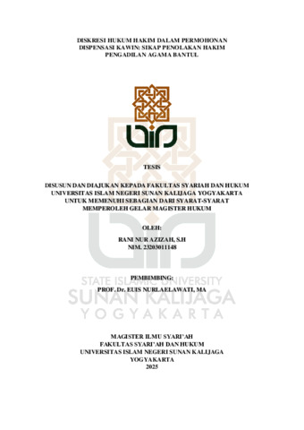 Text (DISKRESI HUKUM HAKIM DALAM PERMOHONAN DISPENSASI KAWIN: SIKAP PENOLAKAN HAKIM PENGADILAN AGAMA BANTUL)