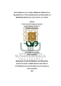 Penelitian ini merupakan penelitian dan penngembangan (Research and Development/R&D). tujuan dari penelitian ini yaitu untuk mengembangkan media pembelajaran berupa e-comic berbasis permainan tradisional yang layak yang dapat digunakan untuk memfasilitasi kemampuan berpikir kritis dan self-efficacy siswa. Metode yang digunakan adalah model pengembangan ADDIE yang terdiri dari lima tahap, yaitu Analysis, Design, Development, Implementation, dan Evaluation. Subjek penelitian adalah siswa kelas X MAN 4 Sleman yang terbagi menjadi kelas eksperimen dan kelas kontrol. E-comic yang dikembangkan mengusung tema kerajaan dengan cerita yang terintegrasi ke dalam permainan tradisional Indonesia seperti dakon, engklek, dan gobak sodor. Permainanpermainan ini dipilih karena memiliki nilai edukatif, budaya, serta dapat mendorong siswa untuk berpikir kritis dan percaya diri dalam menyelesaikan masalah yang disajikan dalam alur. e-comic disusun menggunakan aplikasi Canva dan IbisPaint X, serta dikemas dalam format flipbook yang dapat diakses melalui gadget. Hasil penelitian menunjukkan bahwa e-comic yang dikembangkan memenuhi kriteria valid, praktis, dan efektif. Hasil validasi ahli media dan materi memperoleh persentase sebesar 88,79% (sangat valid), sementara uji kepraktisan berdasarkan respon siswa mencapai 78,81%. Uji efektivitas menunjukkan adanya peningkatan signifikan kemampuan berpikir kritis (sig. 0,032) dan efikasi diri siswa (sig. 0,000) pada kelas eksperimen dibandingkan kelas kontrol. Dengan demikian, permainan tradisional berbasis e-comic ini layak digunakan dalam pembelajaran matematika untuk meningkatkan kemampuan berpikir kritis dan efikasi diri siswa. Kata kunci: e-comic, permainan tradisional, berpikir kritis, self-efficacy