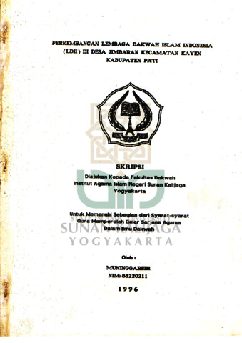 Muninggarsih, NIM.: 88220211 (1996) PERKEMBANGAN LEMBAGA DAKWAH ISLAM INDONESIA (LDII) DI DESA JIMBARAN KECAMATAN KAYEN KABUPATEN PATI. Skripsi thesis, UIN SUNAN KALIJAGA YOGYAKARTA.