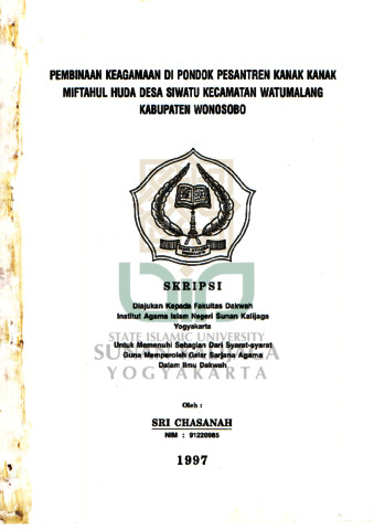 Sri Chasanah, NIM.: 91220985 (1997) PEMBINAAN KEAGAMAAN DI PONDOK PESANTREN KANAK KANAK MIFTAHUL HUDA DESA SIWATU KECAMATAN WATUMALANG KABUPATEN WONOSOBO. Skripsi thesis, UIN SUNAN KALIJAGA YOGYAKARTA.
