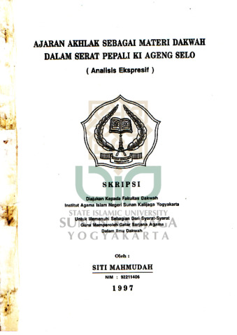 Siti Mahmudah, NIM.: 92211406 (1997) AJARAN AKHLAK SEBAGAI MATERI DAKWAH DALAM SERAT PEPALI KI AGENG SELO ( ANALISIS EKSPRESIF ). Skripsi thesis, UIN SUNAN KALIJAGA YOGYAKARTA.