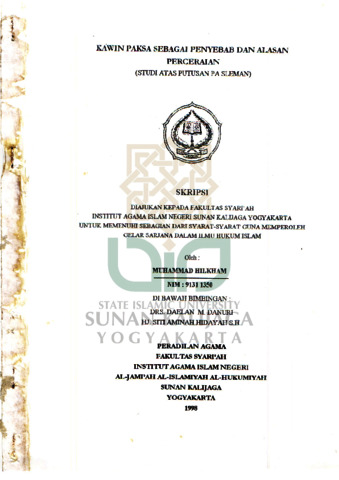 Muhammad Hilkham, NIM.: 911311350 (1998) KAWIN PAKSA SEBAGAI PENYEBAB DAN ALASAN PERCERAIAN (STUDI ATAS PUTUSAN PA SLEMAN). Skripsi thesis, UIN SUNAN KALIJAGA YOGYAKARTA.