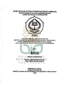 Husen, NIM.: 91311341 (1998) STUDI TENTANG PUTUSAN PEMBAGIAN HARTA BERSAMA DI PENGADILAN AGAMA LHOKSEUMAWE (ANALISIS ATAS PUTUSAN NO. 201/PERDT.G/1990). Skripsi thesis, UIN SUNAN KALIJAGA YOGYAKARTA.
