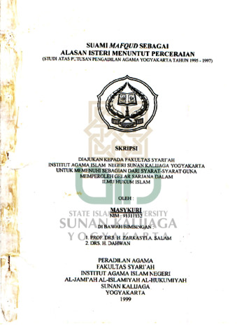 Text (SUAMI MAFQUD SEBAGAI ALASAN ISTERI MENUNTUT PERCERAIAN (STUDI ATAS PUTUSAN PENGADILAN AGAMA YOGYAKARTA TAHUN 1995-1997))