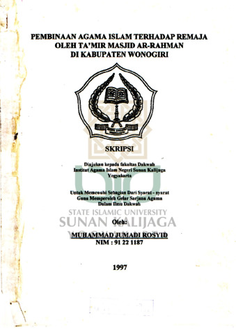 Muhammad Jumadi Rosyid, NIM.: 91221187 (1998) PEMBINAAN AGAMA ISLAM TERHADAP REMAJA OLEH TA'MIR MASJID AR-RAHMAN DI KABUPATEN WONOGIRI. Skripsi thesis, UIN SUNAN KALIJAGA YOGYAKARTA.