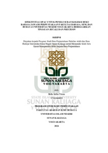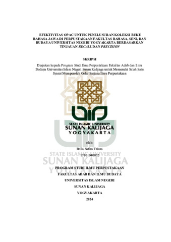 Text (EFEKTIVITAS OPAC UNTUK PENELUSURAN KOLEKSI BUKU BAHASA JAWA DI PERPUSTAKAAN FAKULTAS BAHASA, SENI, DAN BUDAYA UNIVERSITAS NEGERI YOGYAKARTA BERDASARKAN TINJAUAN RECALL DAN PRECISION)