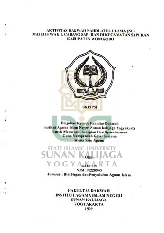 Zaetun, NIM.: 91220940 (1999) AKTIVITAS DAKWAH NAHDLATUL ULAMA (NU) MAJELIS WAKIL CABANG SAPURAN DI KECAMATAN SAPURAN KABUPATEN WONOSOBO. Skripsi thesis, UIN SUNAN KALIJAGA YOGYAKARTA.