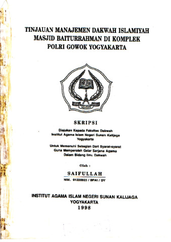 Saifullah, NIM.: 91220920 (1998) TINJAUAN MANAJEMEN DAKWAH ISLAMIYAH MASJID BAITURRAHMAN DI KOMPLEK POLRI GOWOK YOGYAKARTA. Skripsi thesis, UIN SUNAN KALIJAGA YOGYAKARTA.