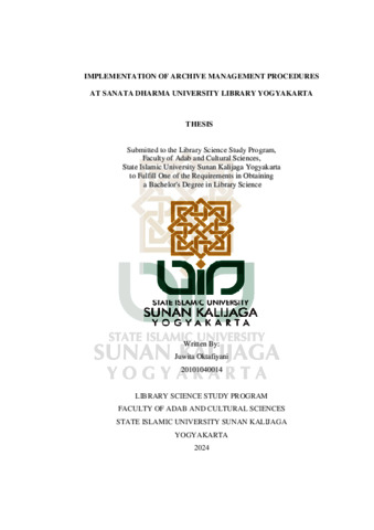 Text (IMPLEMENTATION OF ARCHIVE MANAGEMENT PROCEDURES AT SANATA DHARMA UNIVERSITY LIBRARY YOGYAKARTA)
