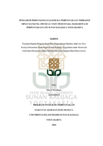 Dhorif Wiridhana, NIM.: 20101040019 (2024) PENGARUH PERPANJANGAN JAM BUKA PERPUSTAKAAN TERHADAP MINAT KUNJUNG (PHYSICAL VISIT) PEMUSTAKA MAHASISWA DI PERPUSTAKAAN UIN SUNAN KALIJAGA YOGYAKARTA. Skripsi thesis, UIN SUNAN KALIJAGA YOGYAKARTA.